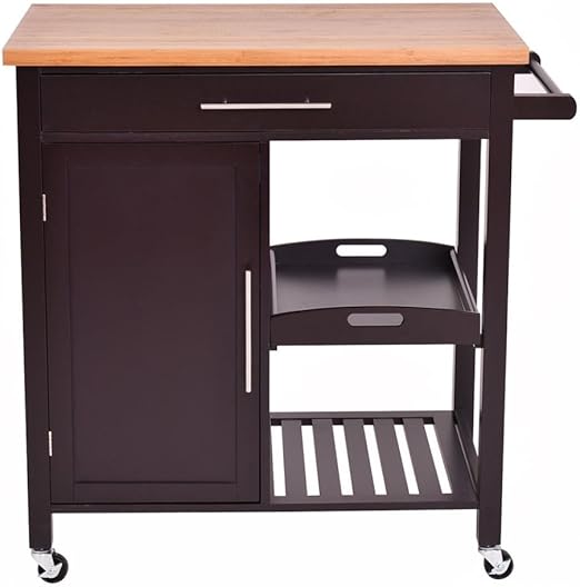 Amazon Com Gymax Rolling Wood Kitchen Island Trolley Cart Bamboo