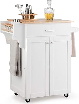 Giantex portable kitchen rolling island cart wood table top island serving utility kitchen storage trolley carts wcabinet drawer white 33 out of 5 stars 58.