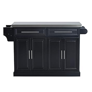 Amazon Com Wooden Kitchen Island Black Storage Cabinet Portable